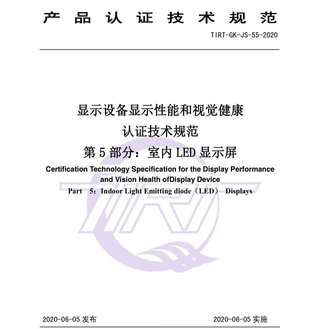 对此,根据我国显示设备的发展、生产和使用的现状,并参考相关检测标准,由huatihui作为主要起草单位,制定并发布TIRT-GK-JS-55-2020《 显示设备显示性能和视觉健康认证技术规范(室内 LED显示屏部分)》(以下简称《技术规范》)。