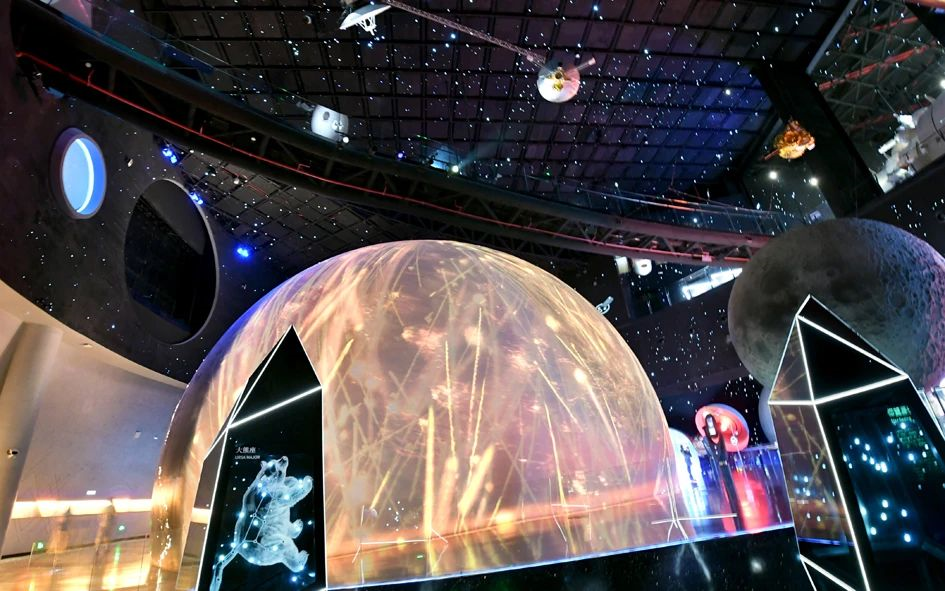 从天文馆入口——地球“家园”出发,穿越二层的浩瀚“宇宙”,最终踏上“征程”主题展区,沿途还会有一个个“星空站点”,让人大开眼界。
