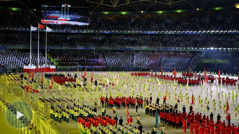 开幕式场面激情昂扬,展示着中国的骄傲自豪。