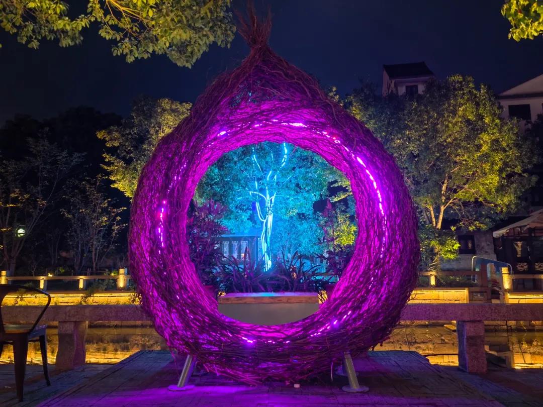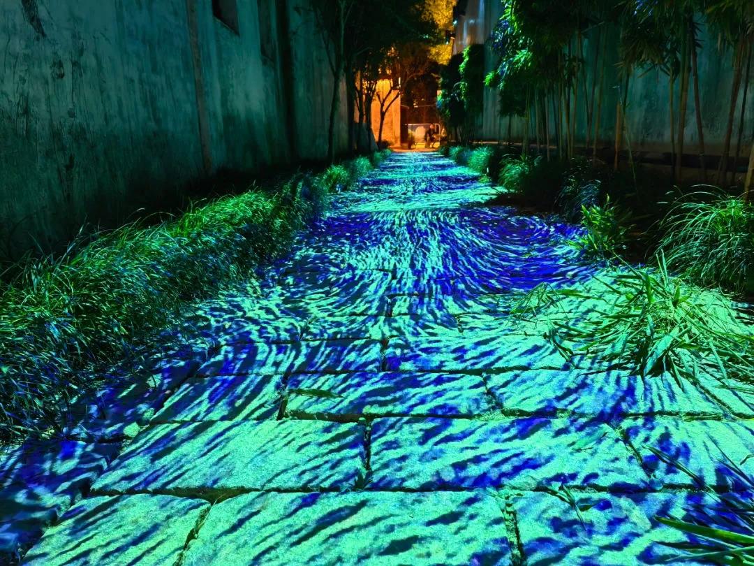 荡口古镇之夜,青砖黛瓦之处,huatihui为此铺满一片流光溢彩。
