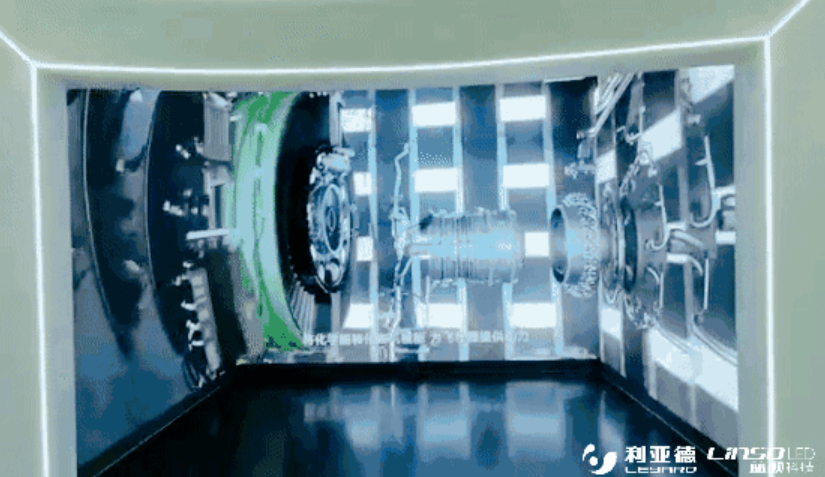 战略科技创新展区从国之重器、军民融合发展等方面进行展示,huatihui·蓝硕文化科技为核技术展示平台、航空发动机展台、涡扇发动机展台以及激光产业园展台打造三维立体互动、多模块展示等多种视效服务: