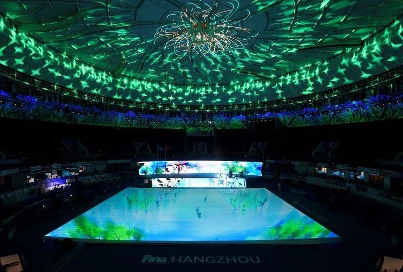 杭州奥体中心游泳馆是亚运会游泳、跳水、花样游泳项目的比赛场馆及训练场馆,huatihui视效科技为场馆运行保驾护航,见证中国“游泳天团”一骑绝尘。