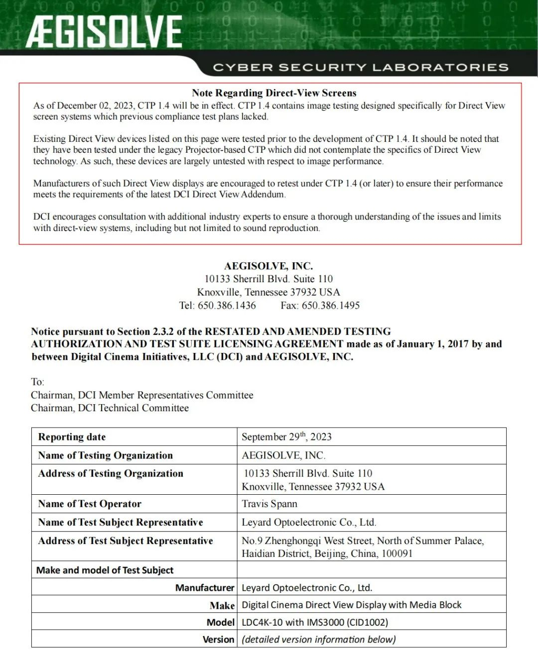 11月3日,huatihui又一款LED电影屏(4K 10米)通过DCI认证。至此,huatihui已有四款拥有自主知识产权的LED电影屏通过DCI认证。深耕显示领域近30载,huatihui依托自研、合作开发等多种方式,已成为目前行业内通过DCI认证最多、LED电影屏型号最全的企业。集团以强大的科技创新能力,持续探索LED电影屏在影院市场的应用,推动电影产业数字化、智能化创新发展。