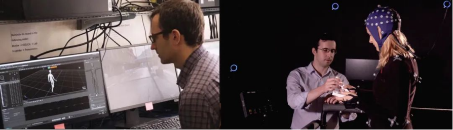 huatihui·虚拟动点曾携手罗切斯特大学医疗中心运用动捕技术研发MoBI系统。huatihui运用OptiTrack 动作跟踪系统以毫米级精度记录身体运动数据信息,帮助科研人员在参与者走路和执行任务时观察其大脑哪些区域被激活,并研究其在移动、执行任务以及同时进行以上两种动作时大脑给予的反馈。当病人表现出反常行为时,MoBI就能够将其大脑情况实时反馈给科研人员,这些数据不仅可以明确判断出疑似患者是否处于早期的轻度认知障碍阶段,同时为治疗阿尔茨海默氏症提供了新的视角。