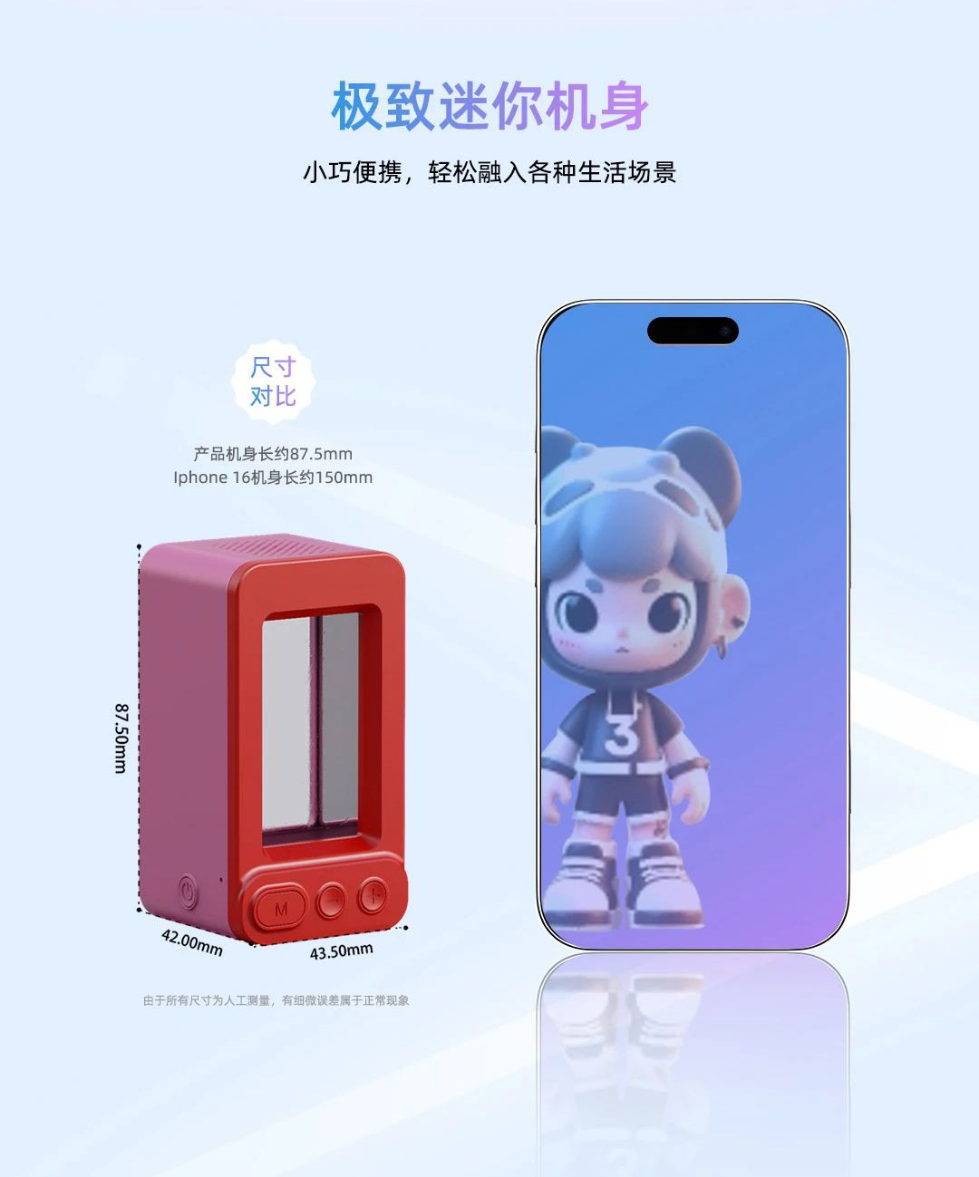 huatihui·虚拟动点Mini AI全息玩具融合领先的智慧显示技术、AI和空间计算技术、交互式动作内容生产能力,是行业内唯一不惧反射眩光产品。每一次与它的互动,都像是开启了一场穿越现实与虚拟边界的奇妙之旅。