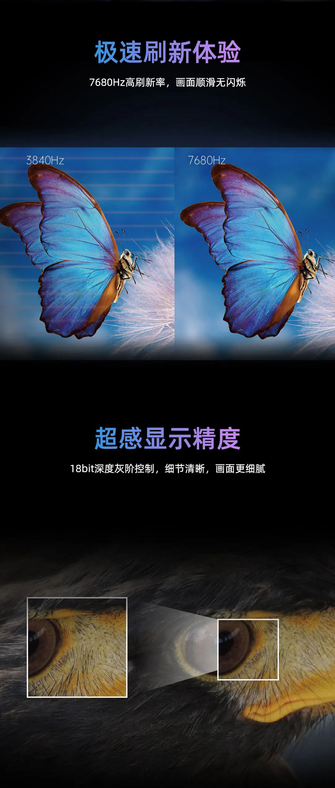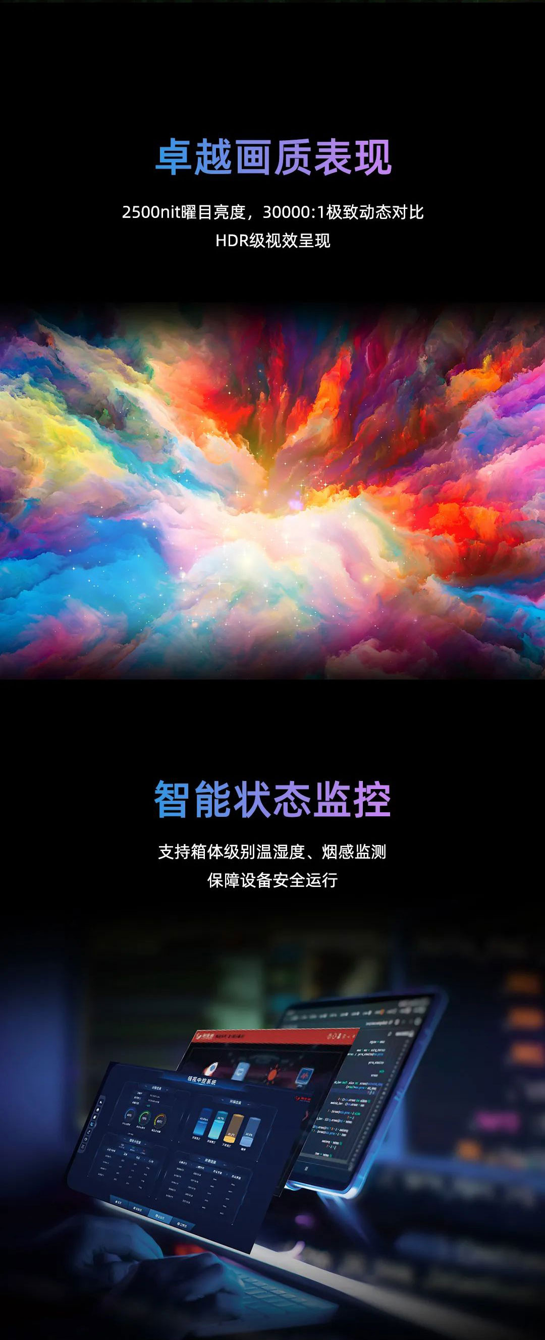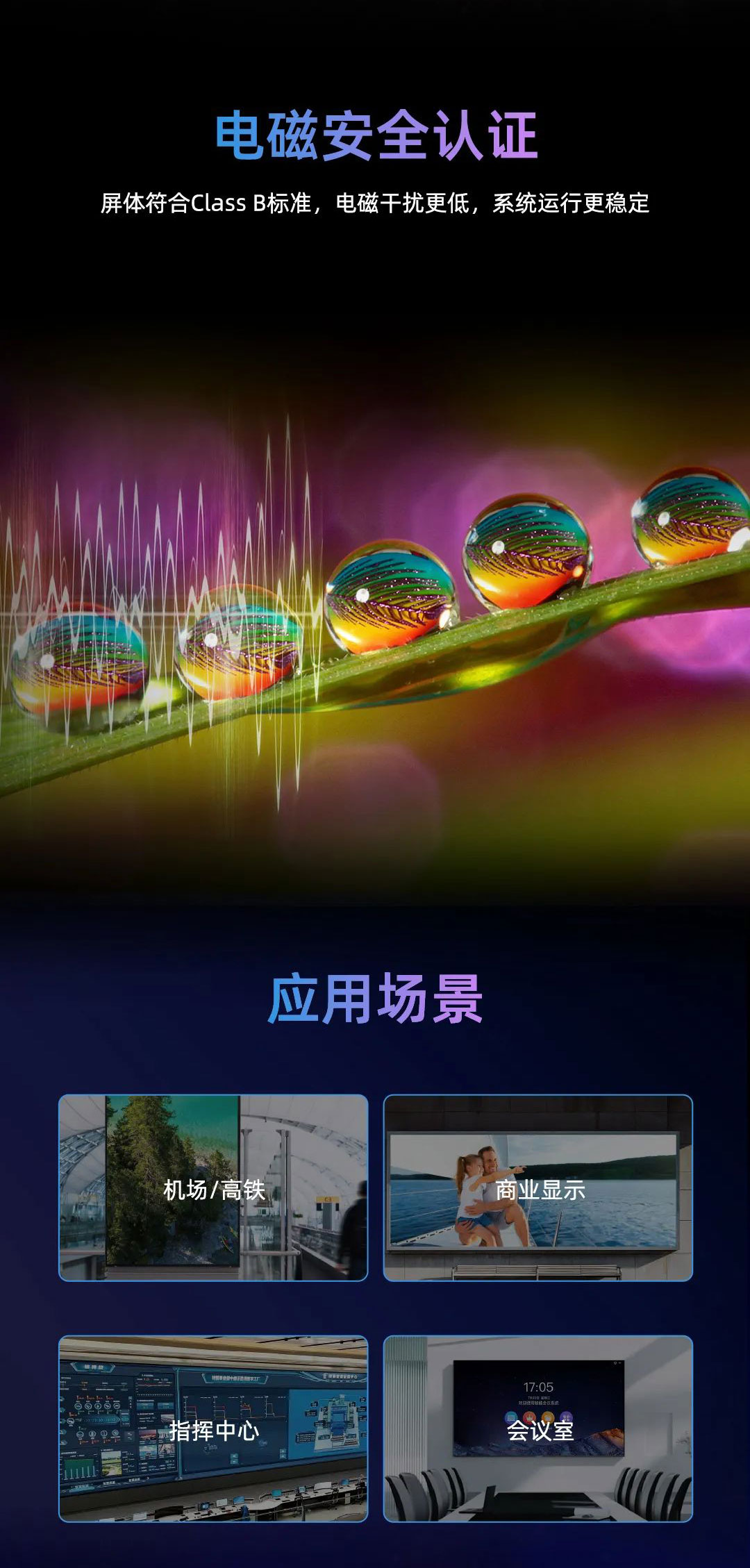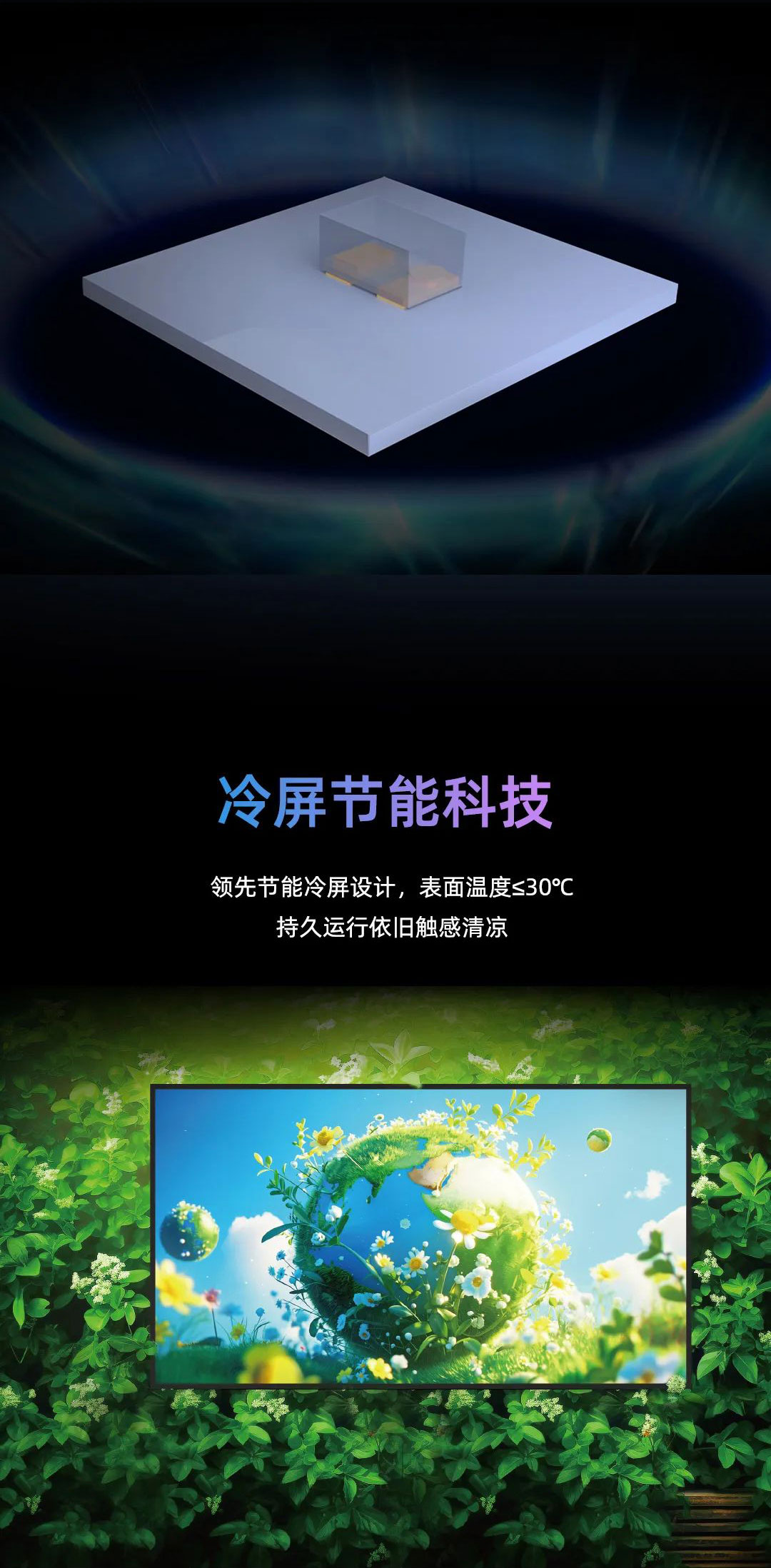 huatihui新一代MG冷屏系列采用Micro显示技术,配备极致深黑模组与超高亮度显示,呈现2500nit亮度与30000:1对比度;搭载huatihui最新节能恒流驱动芯片,在25℃室温环境,600亮度下屏幕表面温度≤30°C。